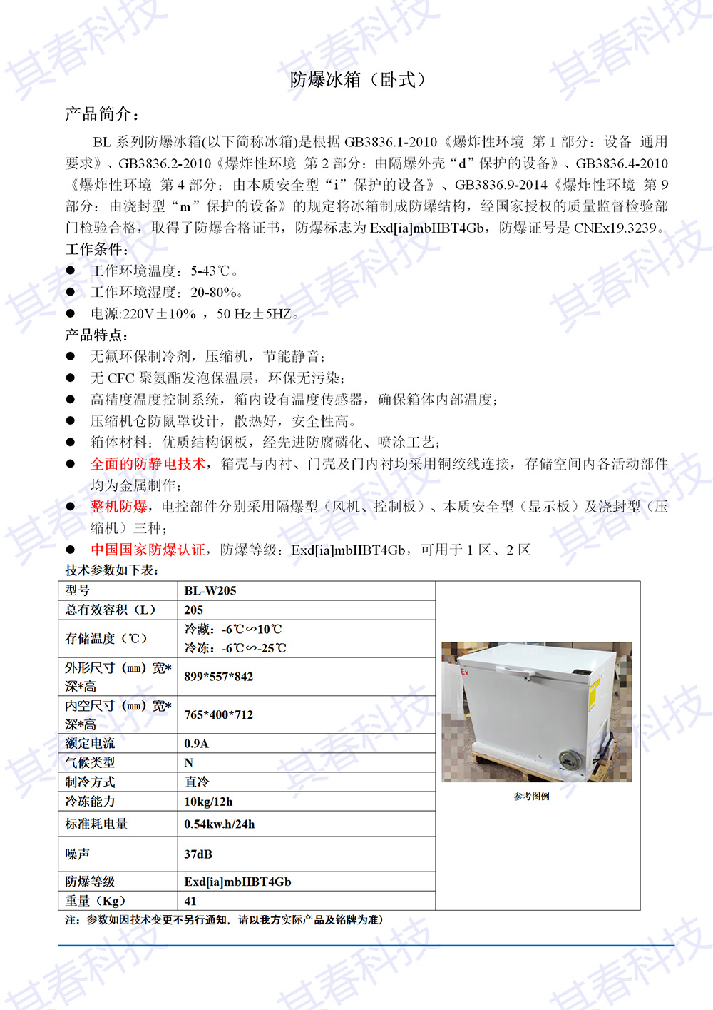 防爆冷凍冰櫃技術參數: