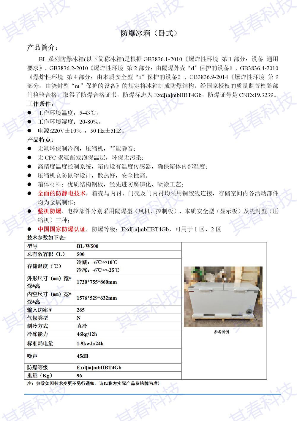 10℃∽-25℃可調防爆冰櫃BL-W515