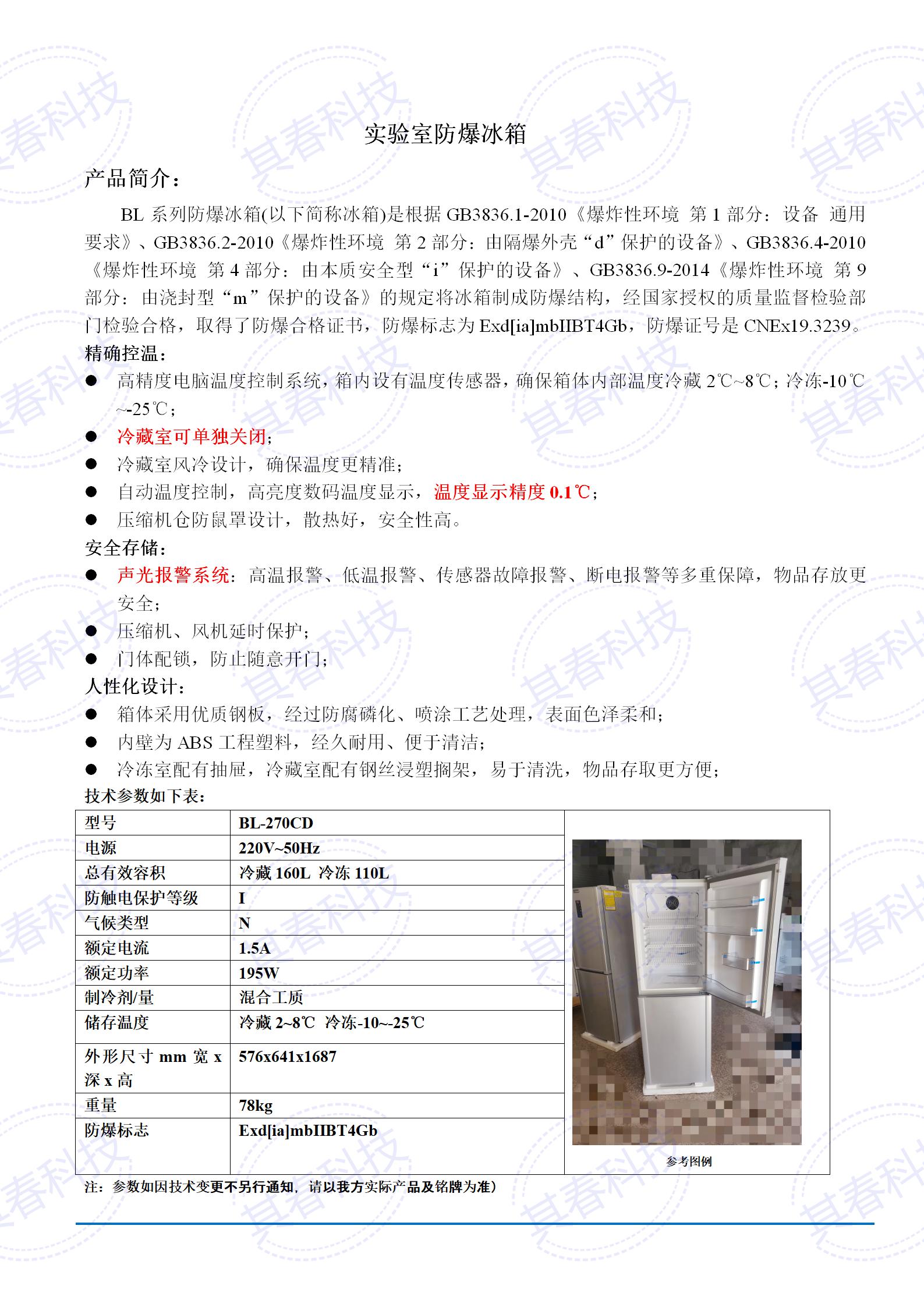 BL-120CD小型冷藏冷凍實驗室防爆冰箱