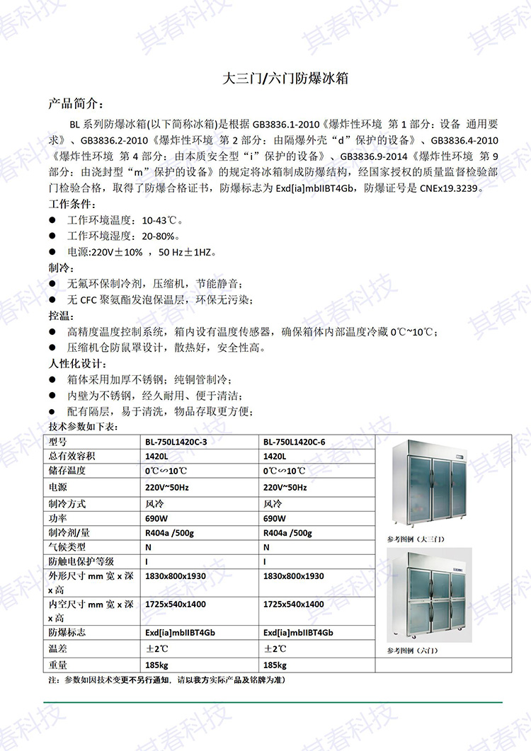 BL-750L1420C-3防爆冷藏櫃三開門大容量防爆冷櫃