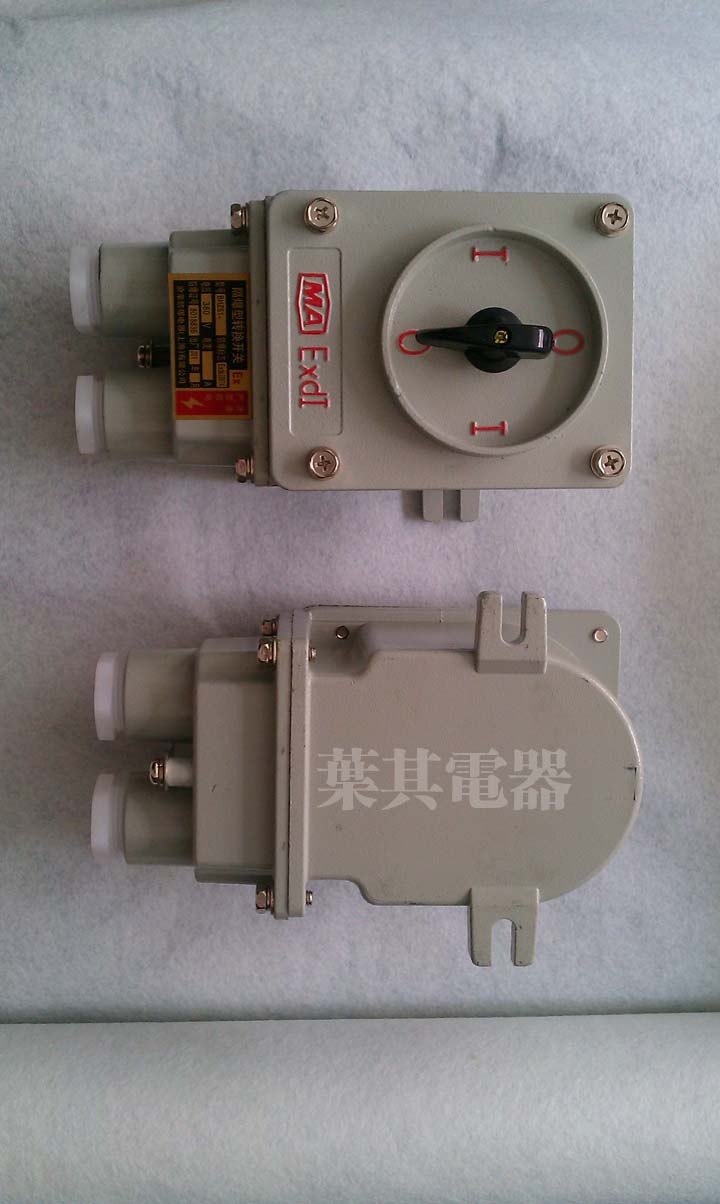 隔爆型外殼采用優質鋁合金壓鑄成型,表麵進行噴塑處理,大大加強設備的防腐能力;本產品在電壓220V~380V,電流10-60A的電氣線路中作電源引入開關,並可控製電動機的起動、停止、變速、換向等;可使用電纜或鋼管布線。